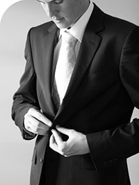 - К черному костюму со светлой рубашкой рекомендуется светлый галстук с мелким рисунком. Черный галстук при черном костюме — выражение скорби и поэтому на свадьбе не уместен.